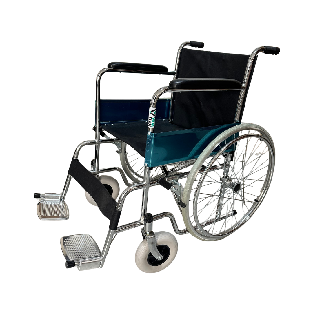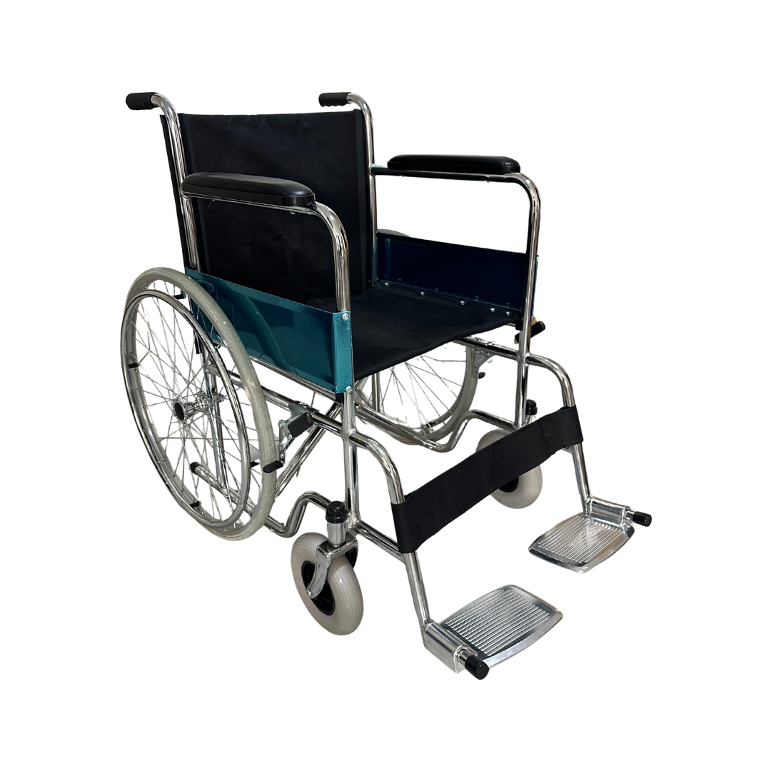 La Silla de Ruedas Estándar combina comodidad, resistencia y practicidad para la movilidad diaria. Fabricada con estructura metálica reforzada y aros posteriores de aluminio, ofrece ligereza y durabilidad sin comprometer la estabilidad.