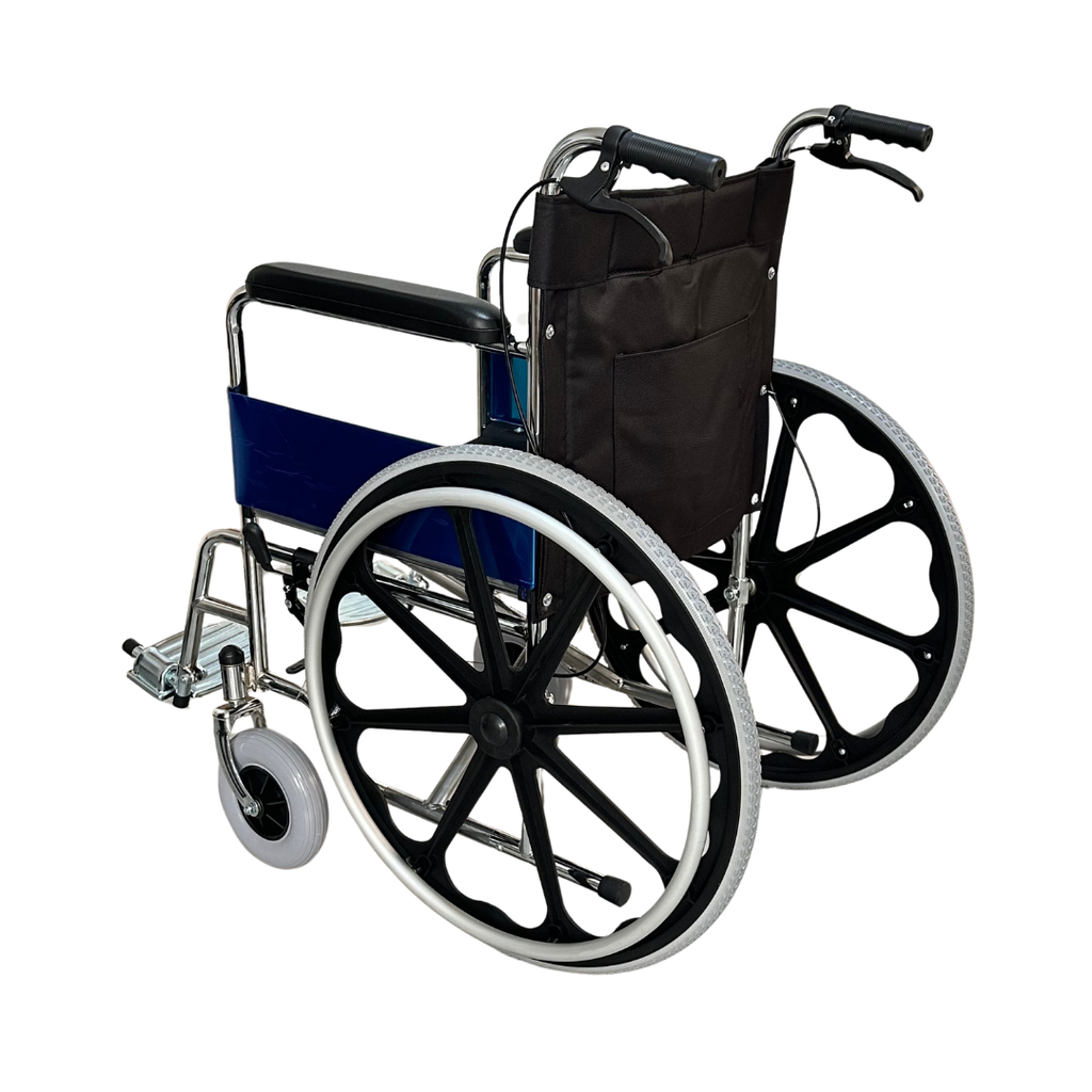 La Silla de Ruedas con Aro Propulsor combina resistencia, comodidad y practicidad para la movilidad diaria. Su estructura metálica reforzada con doble cruceta brinda mayor estabilidad, firmeza y durabilidad, asegurando un uso confiable incluso en jornadas prolongadas. El aro de rayos en PVC aporta ligereza, mientras que las ruedas delanteras de jebe duro de alta resistencia permiten un desplazamiento suave en diversos tipos de superficie.
