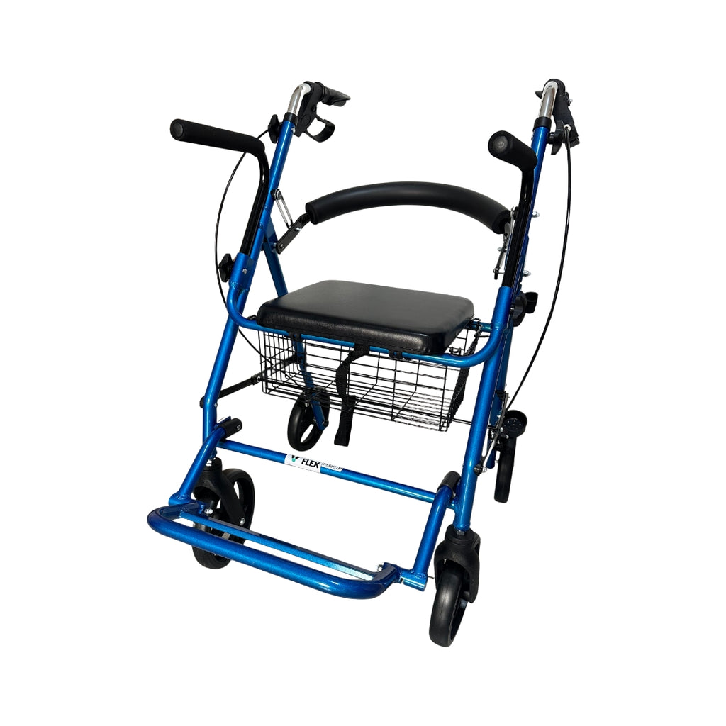 Andador C/ Asiento Ruedas Canastilla Frenos Posapies Ortopédico de Aluminio