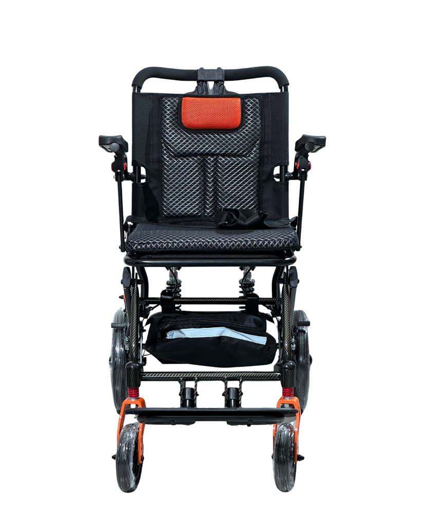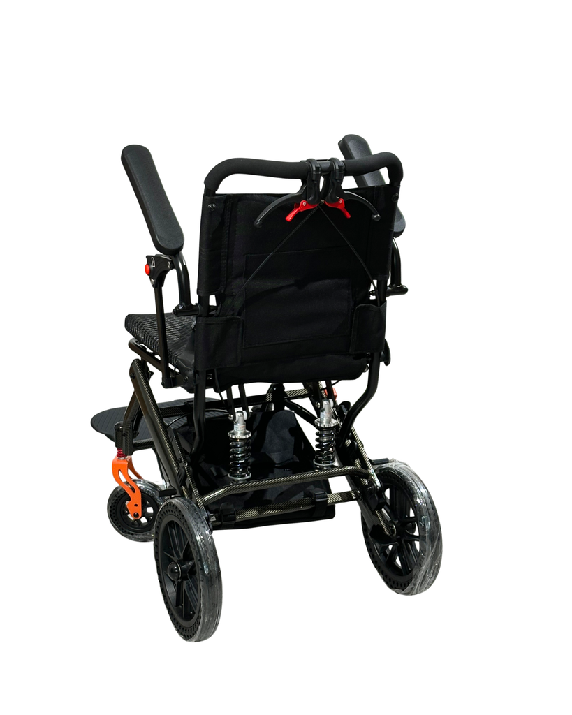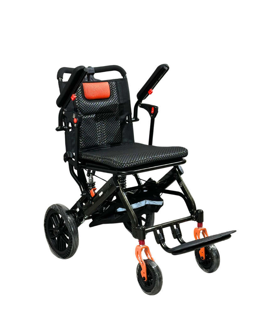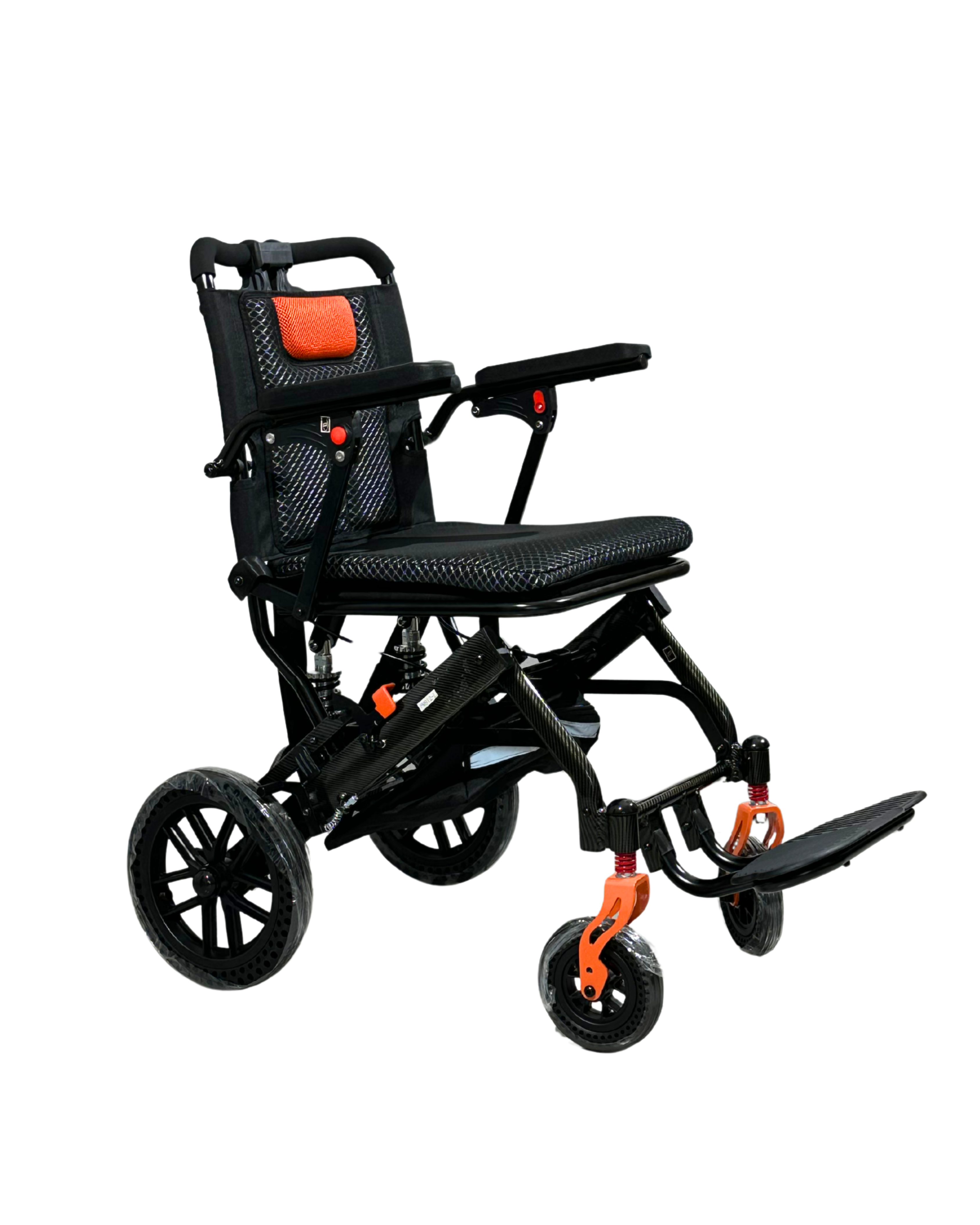 Su diseño ergonómico, con asiento acolchado y apoyabrazos abatibles, proporciona confort en cada uso y facilita las transferencias. El marco de aluminio mantiene la estructura ligera y resistente, mientras que su sistema de plegado compacto permite transportarla y almacenarla con total practicidad. Ideal para quienes buscan una silla moderna, funcional y lista para acompañar un estilo de vida activo.